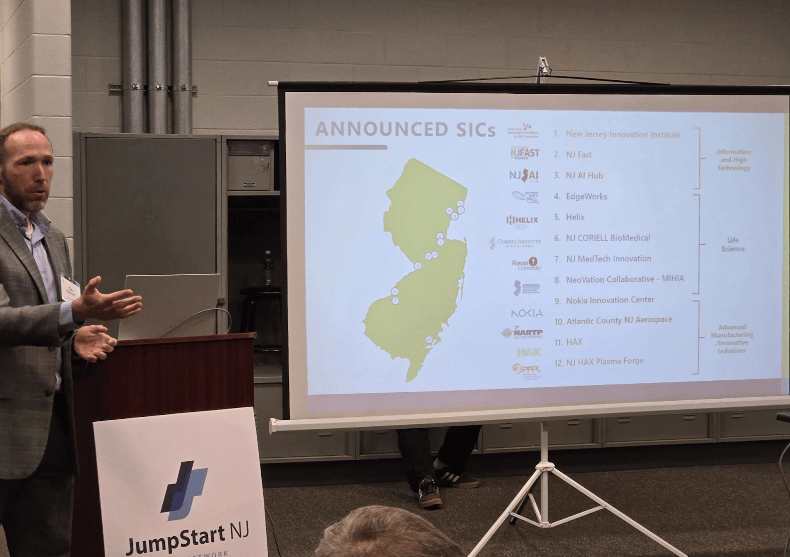 The program opened with remarks from Steve Dyer, JumpStart Chair, followed by an NJEDA overview led by Tim Rollender, Senior Advisor, Strategic Innovation Initiatives. He outlined how SICs are designed to accelerate innovation, entrepreneurship, and venture activity across key sectors throughout the state.
